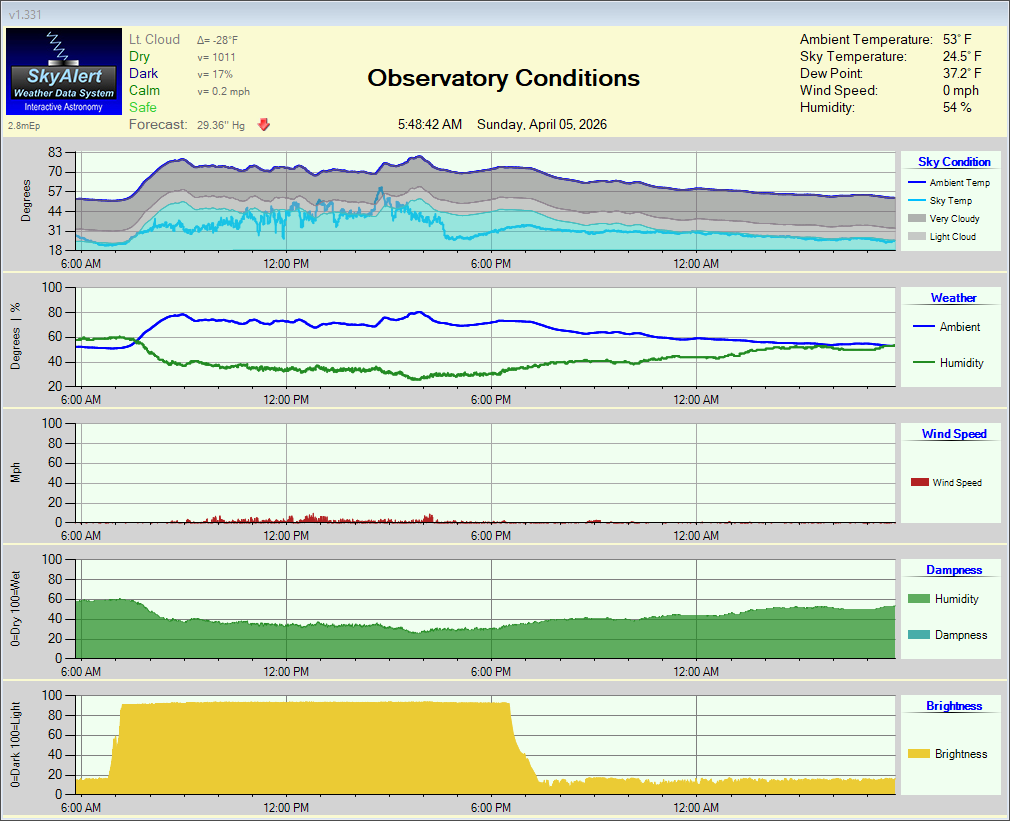 SkiesAway Remote Observatories (SAROs) StatusSAROs1 roof status : OPEN